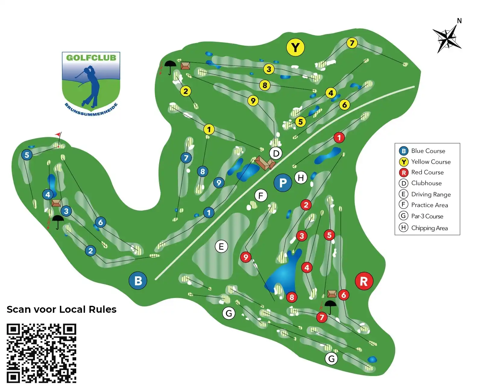 À Brunssummerheide, aucun trou ne ressemble à un autre. Les variations de terrain, la diversité des arbres et la présence de plusieurs étangs et vennetjes créent un parcours à la fois technique, varié et particulièrement agréable à jouer.