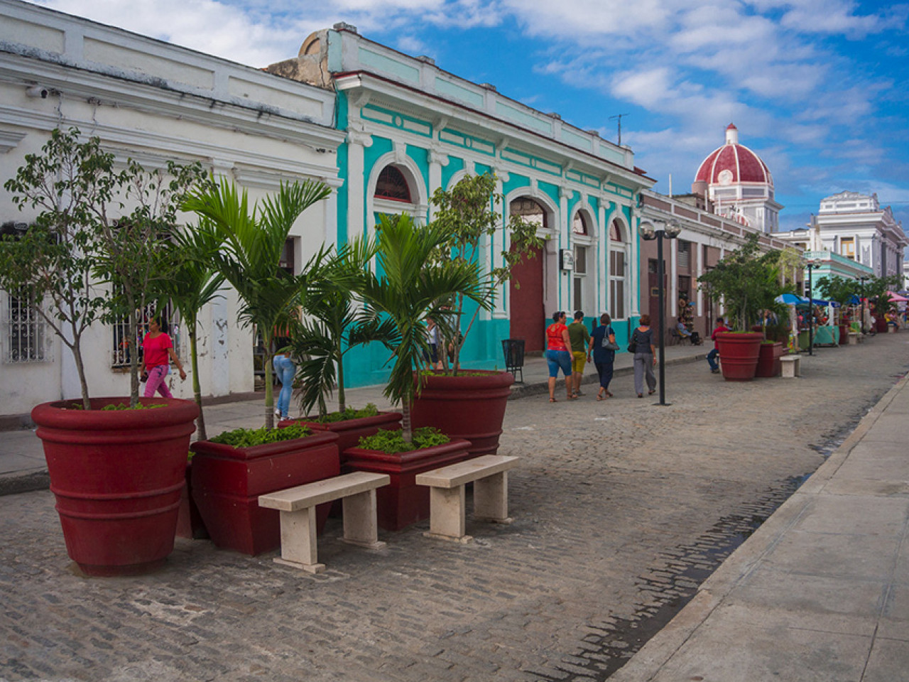 Continuation vers la ville de Cienfuegos où vous aurez du temps libre pour prendre des photos dans le parc central « José Martí »