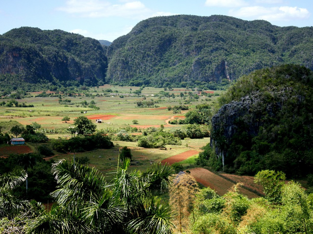 A Viñales, les meilleures vues du paysage peuvent être appréciées depuis la terrasse de l'hôtel Los Jazmines, où vous pourrez observer les mogotes qui s'élèvent comme des dômes dans les champs de tabac fertiles, visiter la fresque préhistorique et la grotte indienne, qui comprend une promenade en bateau à l'intérieur de la grotte.