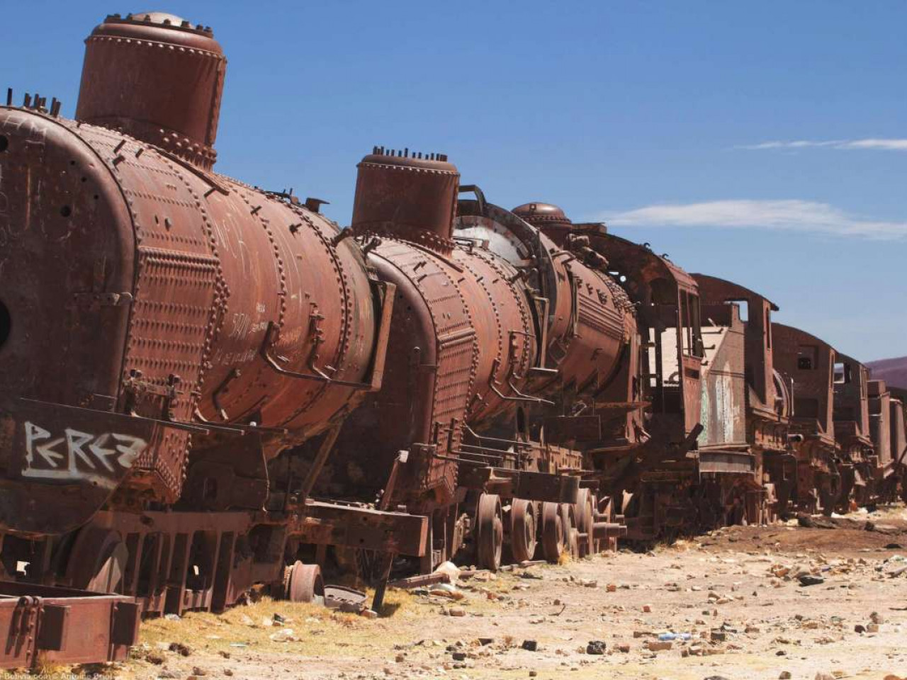 Avant de rejoindre Colchani, nous visiterons le légendaire Cimetière de Trains, où d’anciennes locomotives reposent sous le vaste ciel.