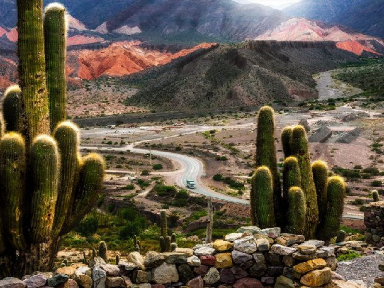 Une fois en territoire argentin, le voyage se poursuit à travers l’iconique Quebrada de Humahuaca, site naturel classé au patrimoine mondial de l’UNESCO, un corridor naturel où collines multicolores, villages traditionnels et héritage andin accompagnent l’itinéraire.