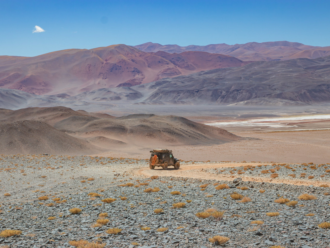 Après les formalités d’immigration à Hito Cajón, nous poursuivons à travers l’Altiplano andin, où le contraste des couleurs et des textures crée des panoramas uniques.