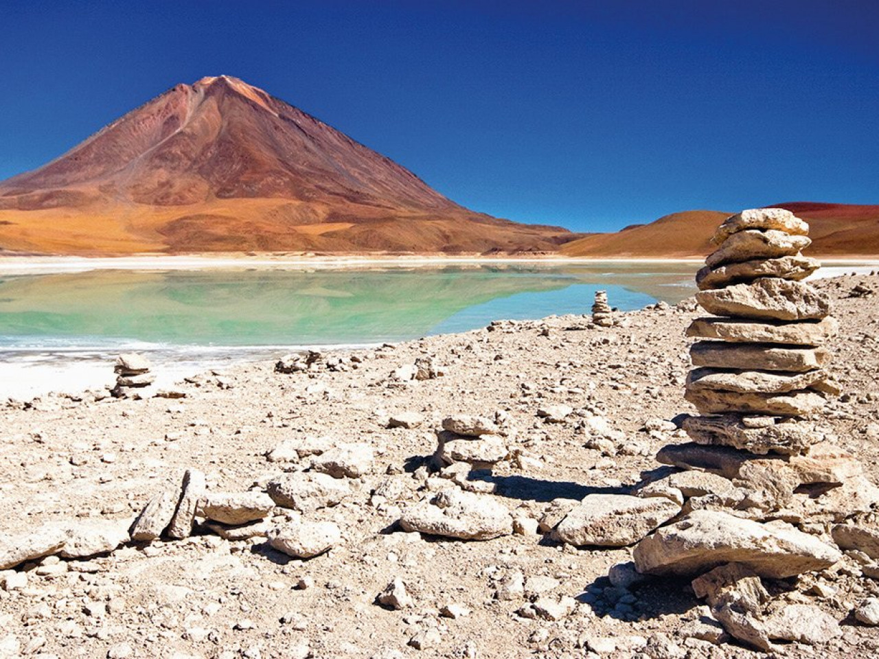 Nous visiterons l’énigmatique Laguna Verde, dont l’intense couleur émeraude provient des minéraux du sol, ainsi que la proche Vallée de Dalí, dont les formes et les teintes rappellent les peintures du célèbre artiste surréaliste.