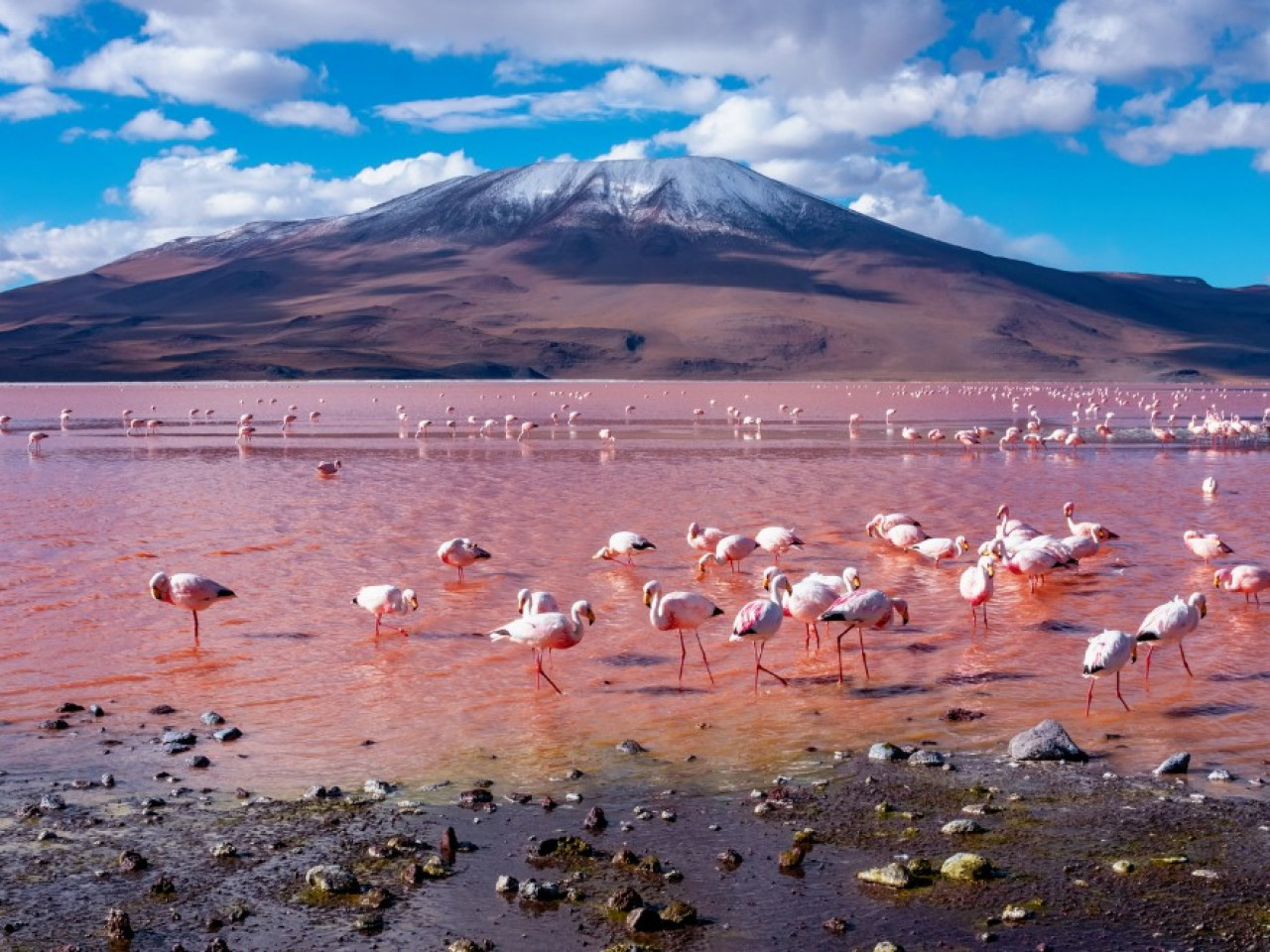 Ensuite, nous profiterons des sources chaudes de Polques et observerons la puissance géothermique des Geysers du Matin. Enfin, nous atteignons la majestueuse Laguna Colorada, refuge de milliers de flamants andins, y compris les flamants de James, espèce unique au monde.