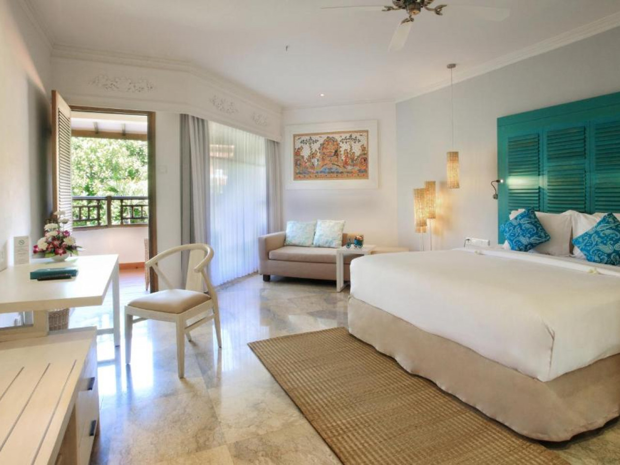 Vivez l’élégance des chambres qui allient un style contemporain et minimaliste à des touches balinaises. Elles sont réparties dans des bâtiments au cœur de jardins tropicaux soigneusement entretenus, de bassins et d’espaces de repos extérieurs. Attention l’hôtel n’accepte pas de chambre triple pour les adultes. Les chambres sont équipées de balcon ou terrasse privée, salle de bains, climatisation, télévision à écran plat, Wi-Fi, café et thé à disposition, minibar, coffre-fort.