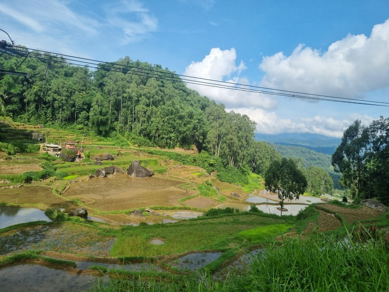Continuation vers BATUTUMONGA, un plateau perché offrant des panoramas spectaculaires sur la vallée et les rizières en terrasses.