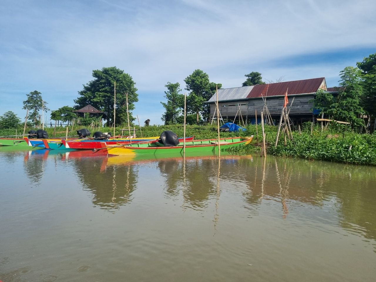 Nous arrivons ensuite dans un petit village de pêcheurs flottant. Accueillis chaleureusement par une famille locale, nous découvrons leur maison sur pilotis et leur mode de vie en harmonie avec le lac. Assis sur un ponton, nous dégustons du thé, du café et des beignets de banane, avant de goûter le délicieux mangoustan, un fruit exotique sucré et rafraîchissant.