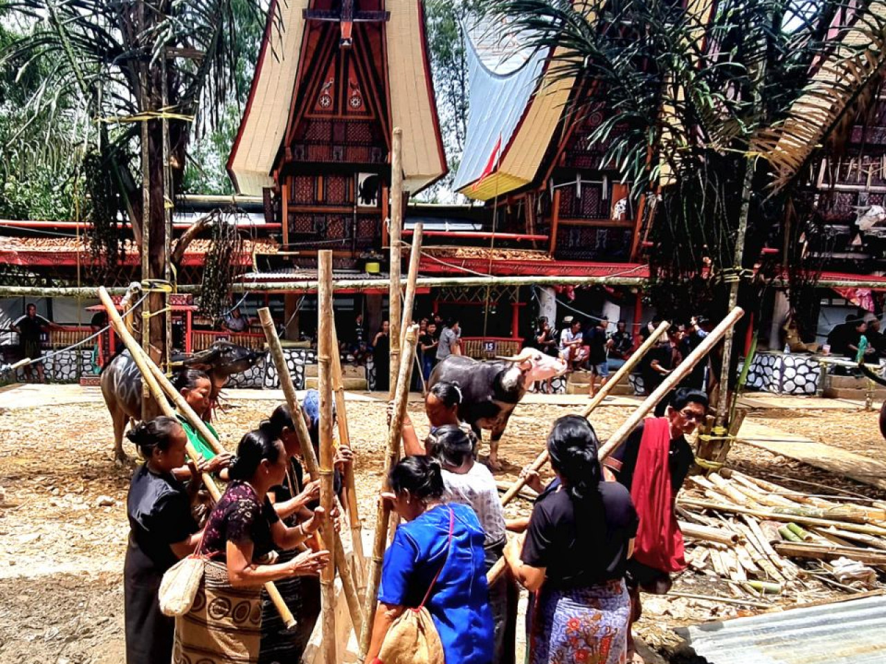 Ces cérémonies, qui peuvent durer plusieurs jours, sont des moments de recueillement mais aussi de rassemblement social où familles et invités se retrouvent pour honorer les défunts. Vous aurez l’occasion d’observer les rites uniques qui accompagnent ces événements, notamment les danses, les chants et les processions de buffles.