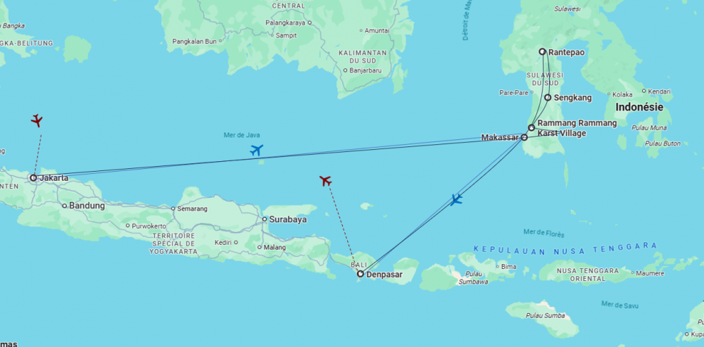 - Le vol national MAKASSAR / DENPASAR sur vol régulier