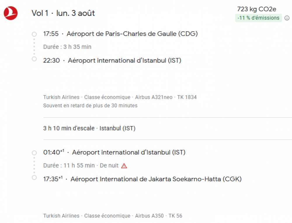 Vous embarquerez à bord de vols réguliers TURKISH AIRLINES, à destination de JAKARTA