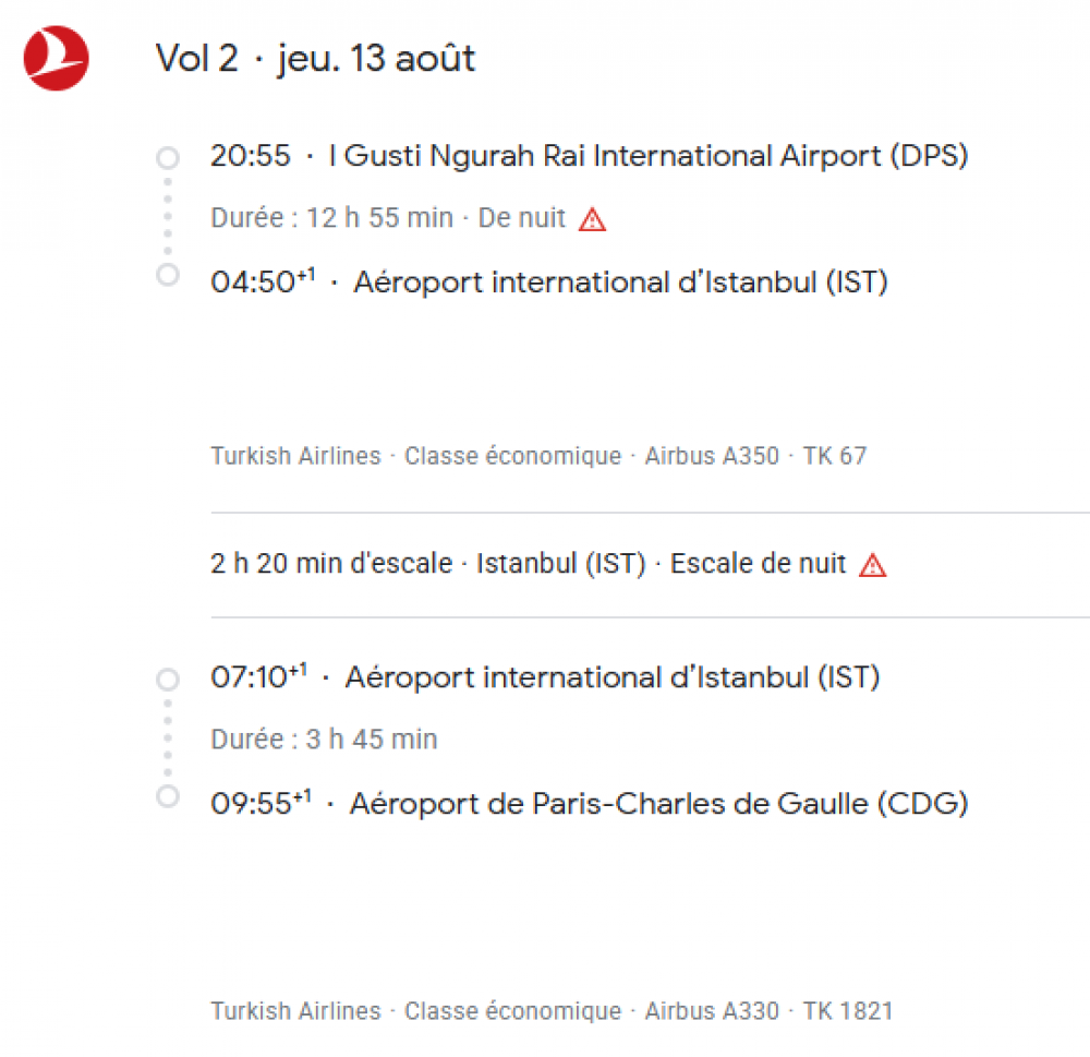 VOS VOLS* TURKISH AIRLINES - DU 3 AU 14 AOUT 2026