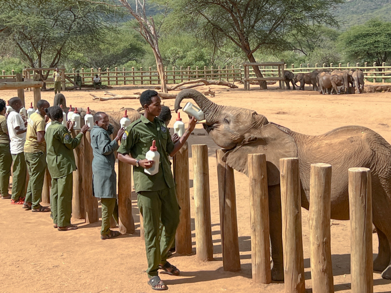 Les éléphanteaux du sanctuaire sont orphelins ou abandonnés en raison de la sécheresse, des puits artificiels, des conflits homme-animal et de la mortalité naturelle. Le sanctuaire a été créé en réponse aux demandes de la communauté locale. Le Kenya Wildlife Service et le gouvernement du comté de Samburu ont encouragé la création de ce sanctuaire, reconnaissant le souhait de la communauté locale de secourir et réhabiliter les éléphants dans leur milieu d'origine. Les gardiens de Reteti sont tous recrutés au sein de Namunyak Conservancy et ont été officiellement formés aux soins, à la réadaptation et à la libération des éléphanteaux. NB : les photos ci-dessous sont prises avec le soigneurs. Tout VRAI sanctuaire interdit l’interaction avec les voyageurs. |