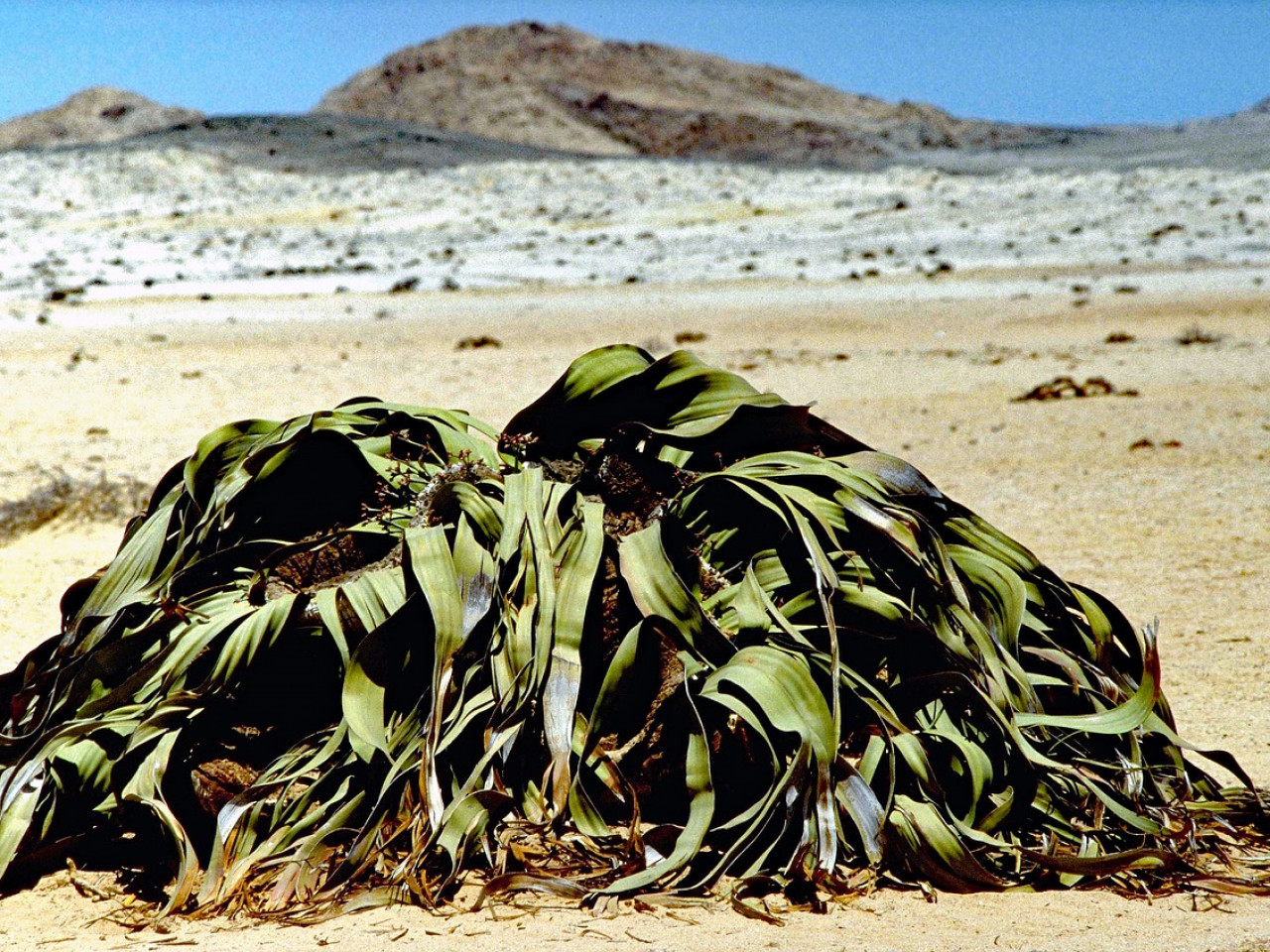Curiosité botanique qui se trouve exclusivement dans les zones de brouillard du désert namibien. Certains spécimens sont âgés de plus de 1 500 ans.