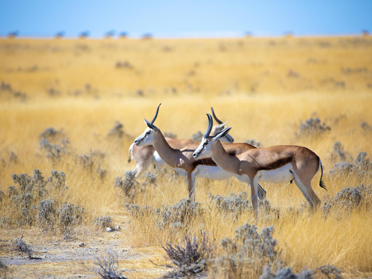 Lorsque le soleil se hisse lentement au-dessus des dunes ondoyantes, le désert du Kalahari s’embrase de nuances spectaculaires : rouge, or, orange. Ce moment privilégié est l’occasion d’observer la faune dans la lumière douce du matin, alors que les animaux reprennent leur activité après la fraîcheur de la nuit. Springboks, autruches et oryx se dessinent sur l’horizon, parfois accompagnés d’innombrables oiseaux aux chants cristallins. Confortablement installés dans un 4x4 ouvert, vous sillonnerez les pistes sableuses, guidés par un ranger passionné qui partagera ses connaissances sur l’écosystème unique du Kalahari, sa végétation caractéristique et les adaptations étonnantes de la faune à cet environnement semi-désertique.