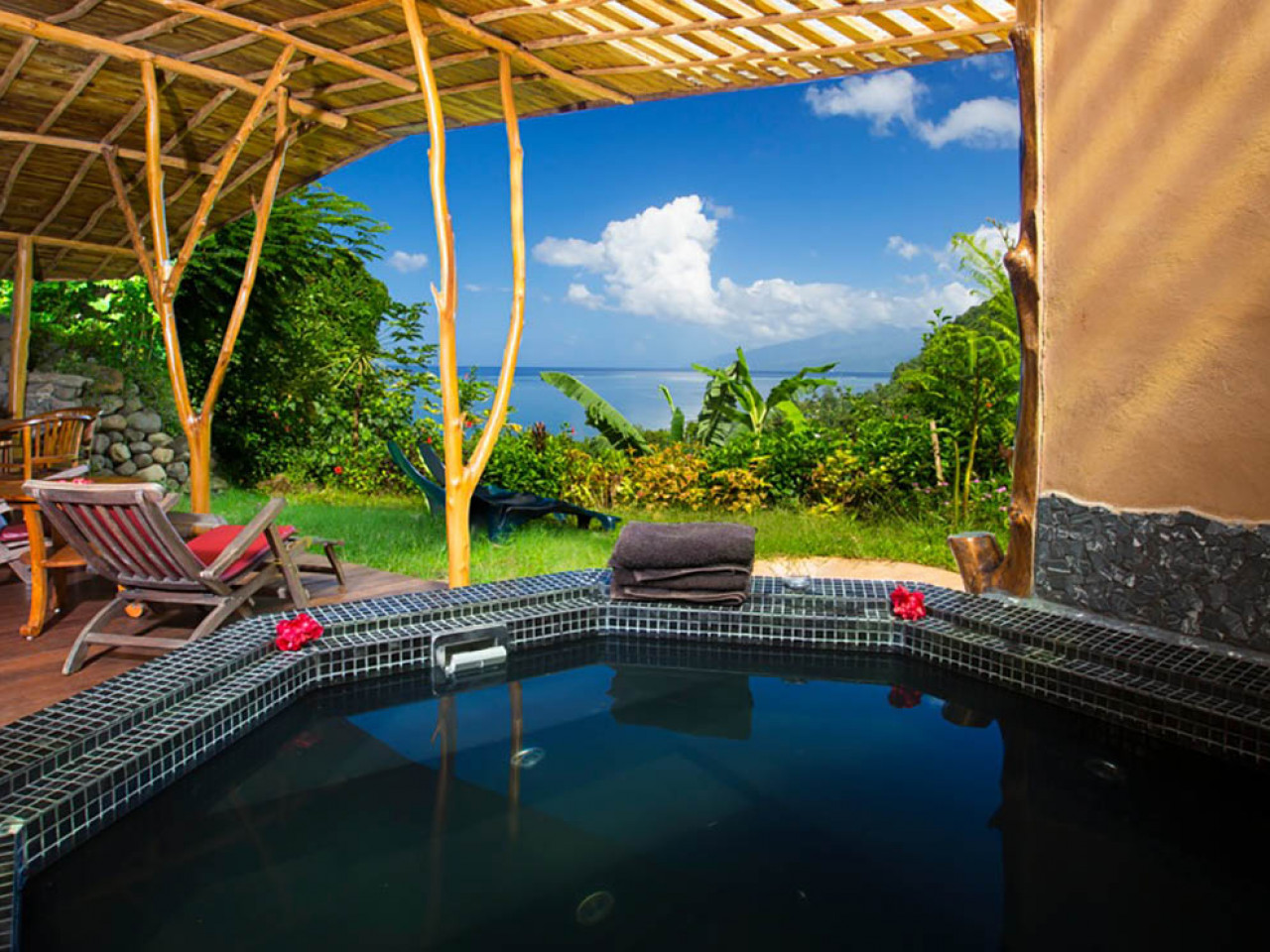 Dès l’arrivée au Vanira Lodge à Tahiti, une tranquillité naturelle enveloppe les lieux. Niché dans une végétation luxuriante, ce lodge propose des bungalows polynésiens en bois et bambou, offrant une vue imprenable sur l’océan ou les montagnes, alliant confort et authenticité.