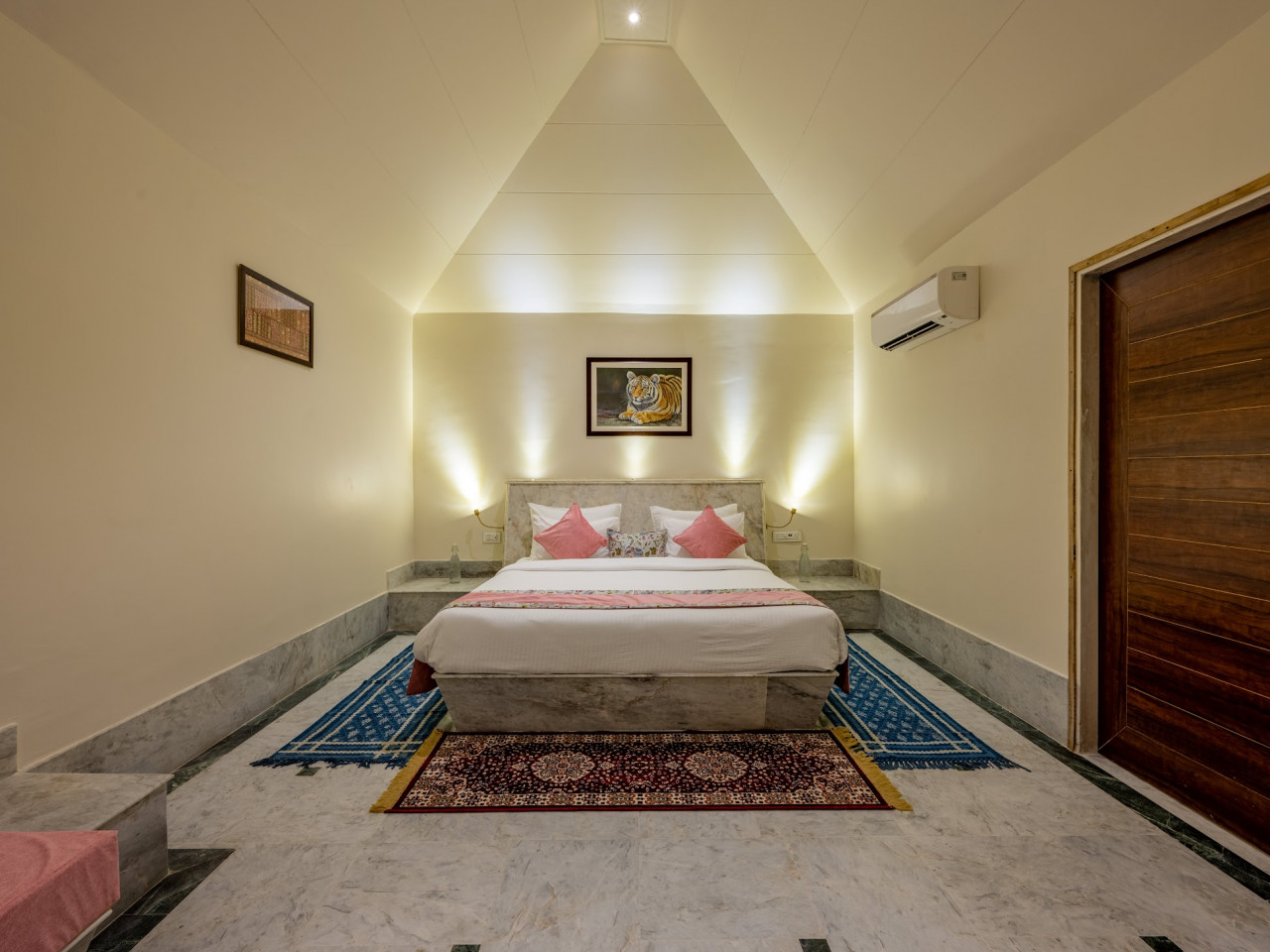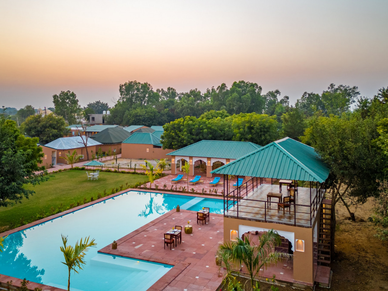 Niché aux portes du parc national, Aangan Resort allie confort et authenticité dans un écrin naturel, idéal pour se ressourcer après un safari au royaume du tigre.