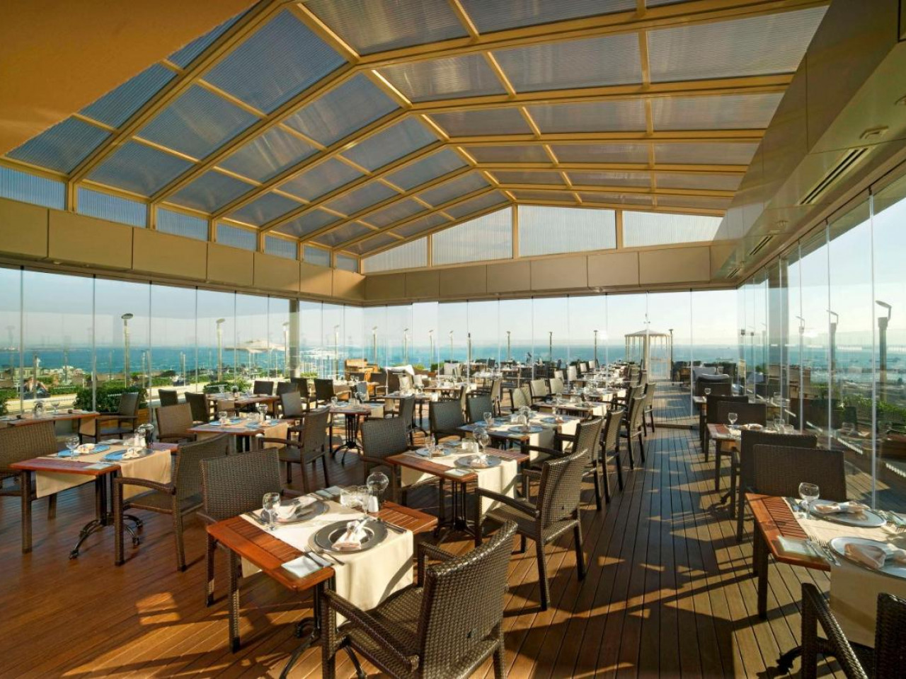 Les clients peuvent profiter de nombreuses installations, notamment une piscine intérieure, un centre de fitness, et un spa où des soins relaxants sont proposés. Le restaurant de l'hôtel propose une cuisine internationale ainsi que des spécialités turques, servies dans un cadre élégant avec vue panoramique sur la ville. Le petit déjeuner buffet est varié et met en avant des produits locaux frais.