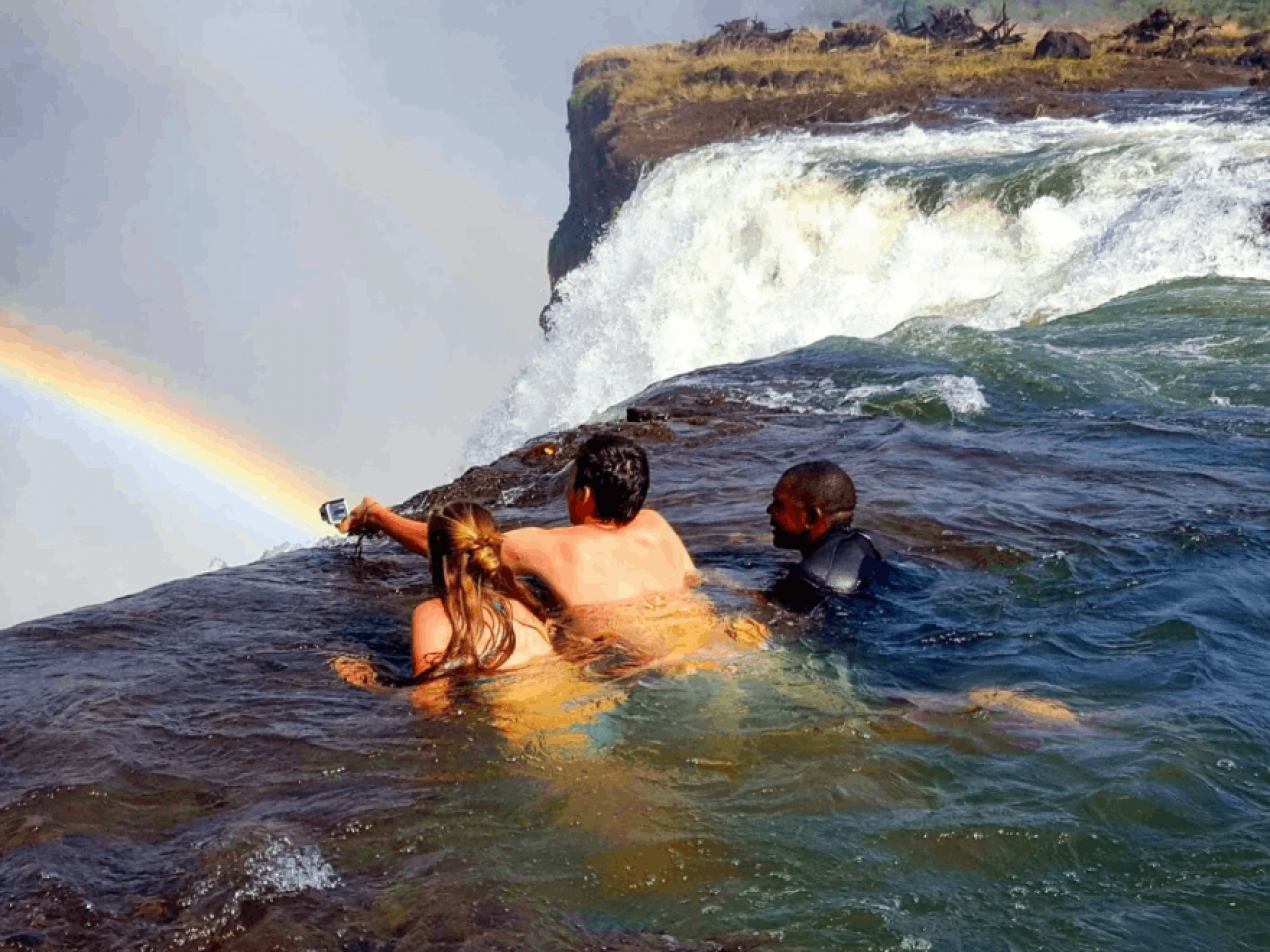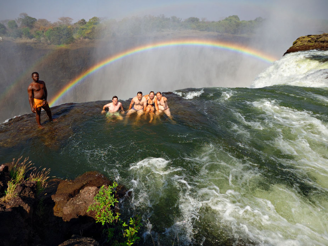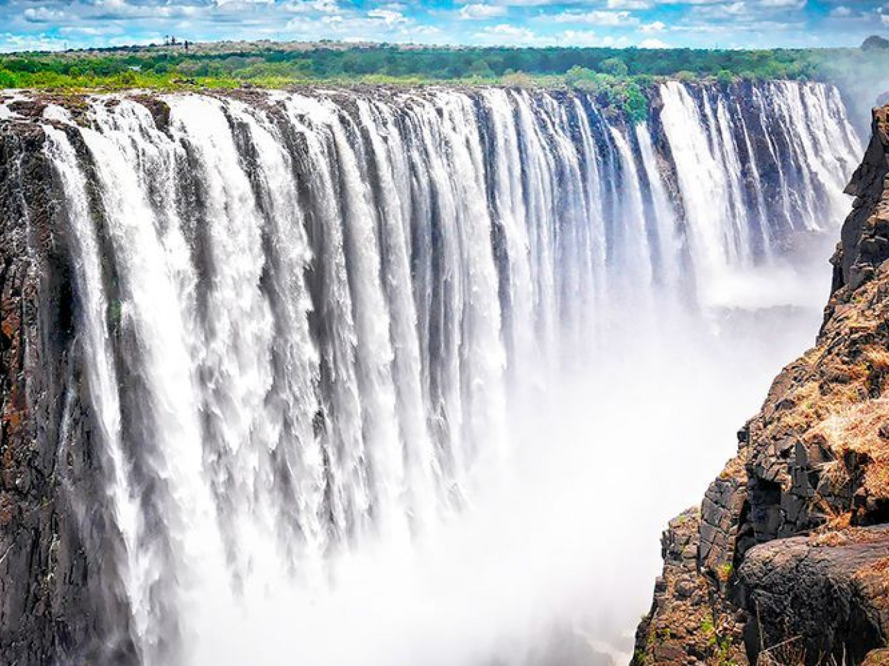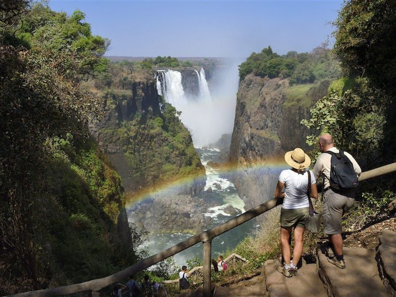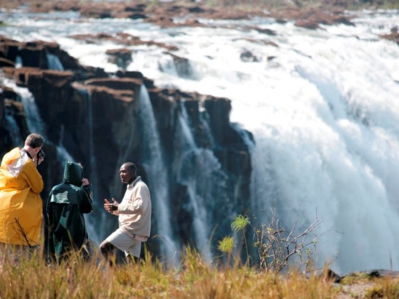 Découverte pédestre des chutes Victoria côté Zimbabwe. Le fleuve Zambèze se jette dans la plus grande cataracte du monde, sur 1 688 m de longueur et de 61 à 108 mètres de hauteur.