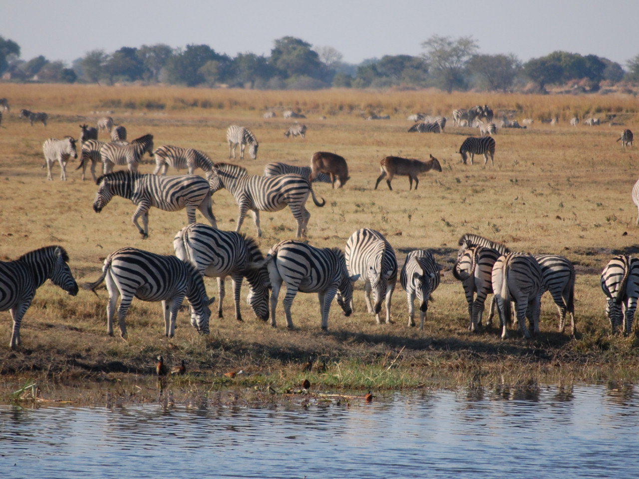 Il est fréquent de voir les animaux sauvages du parc National du Zambèze s’abreuver sur les bords du fleuve.
