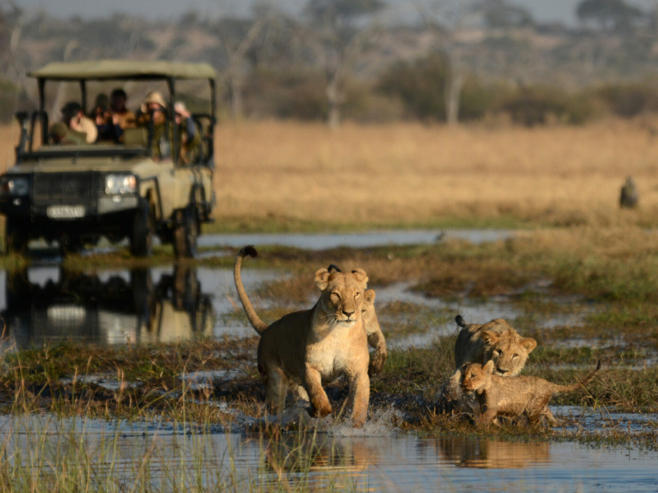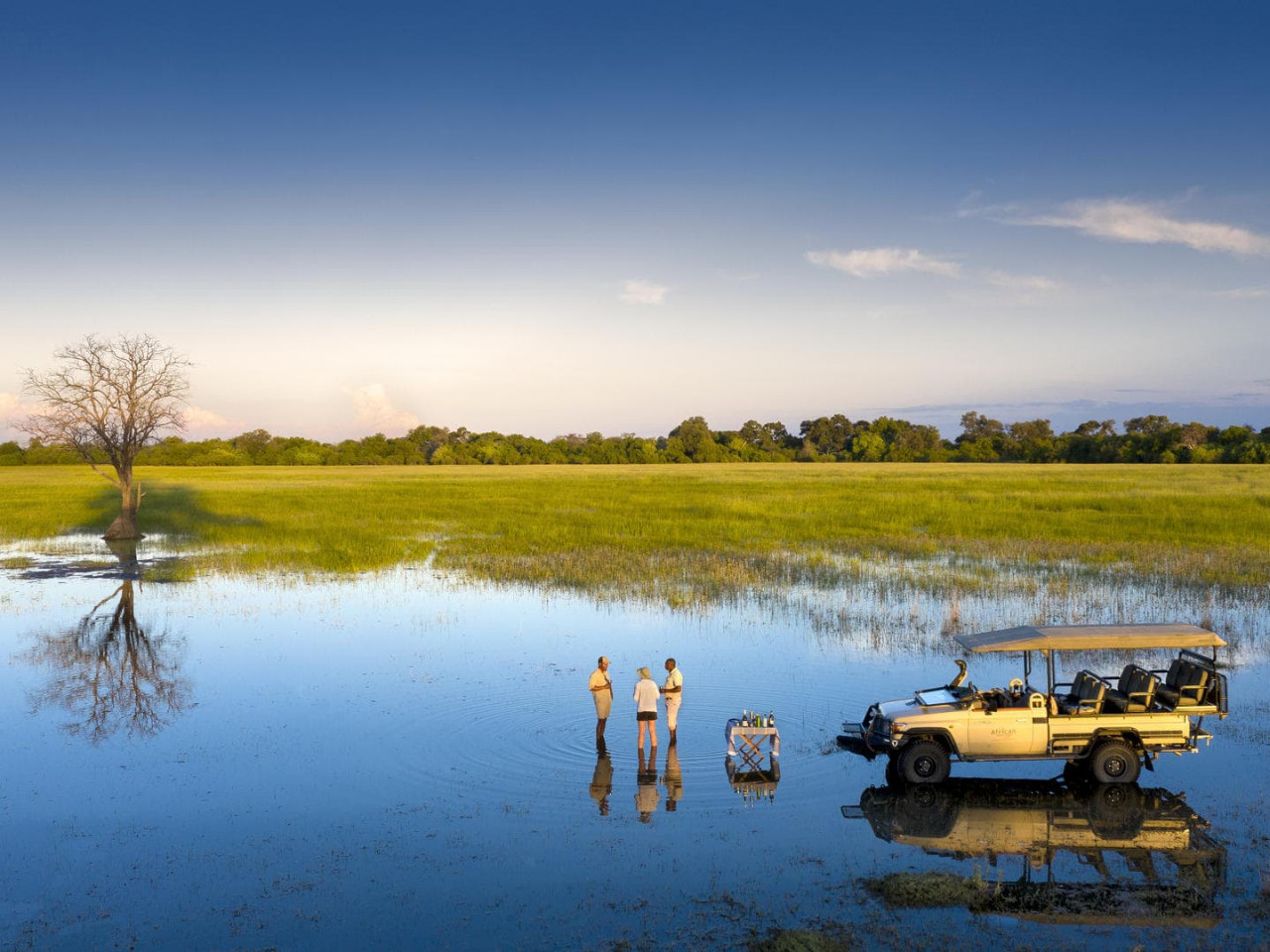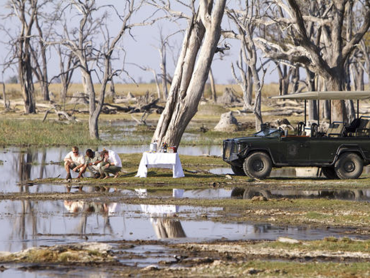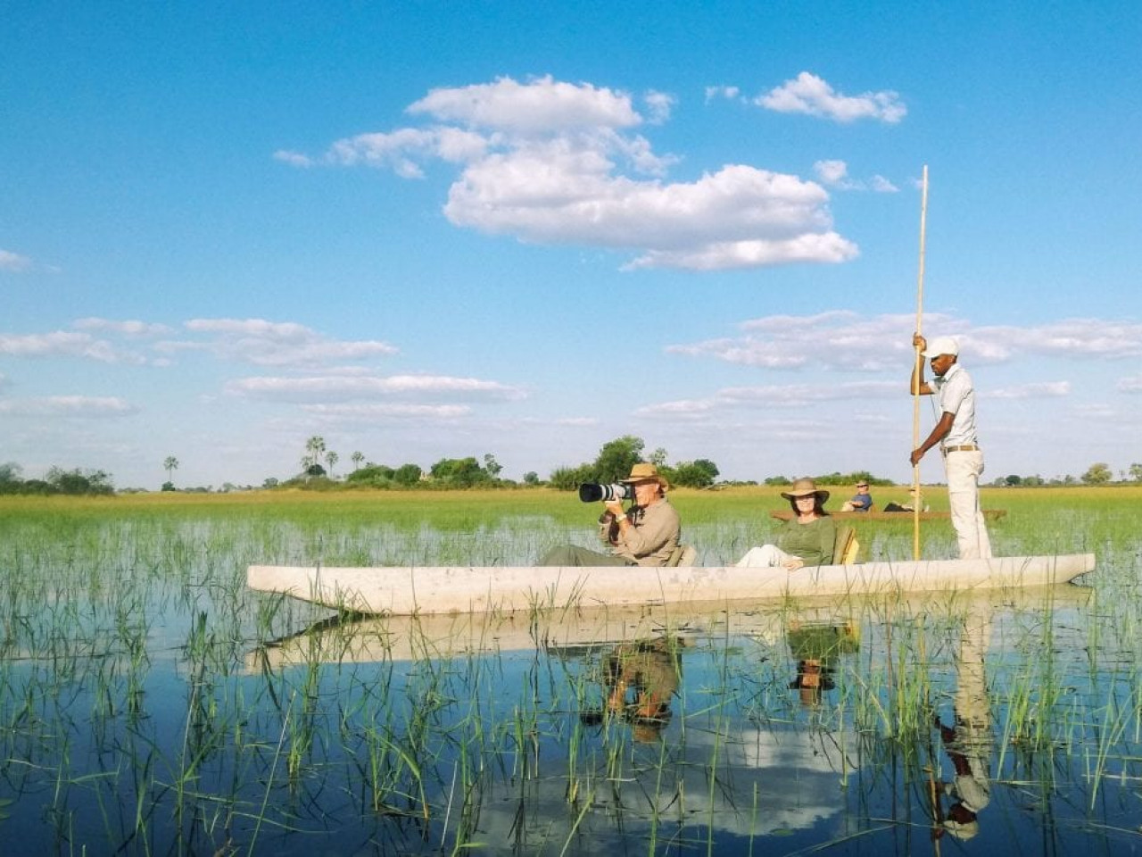 Départ pour une activité organisée par le lodge (safaris en 4x4, promenades en bateau à moteur, observation d'oiseaux lors d'excursions aux lagons de Xakanaxa et de Gadikwe).