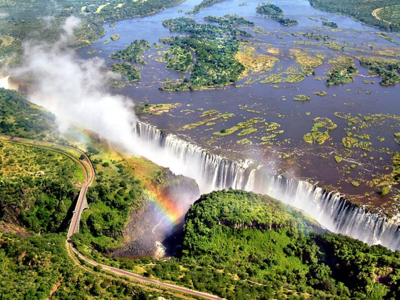 Les chutes sont en réalité au nombre de 5. Il s’agit de Horseshoe House ( la maison des chaussures du cheval ) , Devil’s Cataract ( la cataracte du diable ), Main Falls ( la chute principale ), Rainbow Falls (les chutes arc-en-ciel) et Eastern Cataract ( la cataracte de l’est ). La force des chutes est telle qu’elles dégagent un nuage de poussière d’eau qui s’élève jusqu’à 500 mètres de hauteur, d’où l’explication du nom africain donné aux chutes, « Mosi oa Tunya », la fumée qui tonne. Par la suite, le docteur David Livingstone, explorateur et missionnaire anglais les découvre en 1855 et les baptise du nom de la reine Victoria.