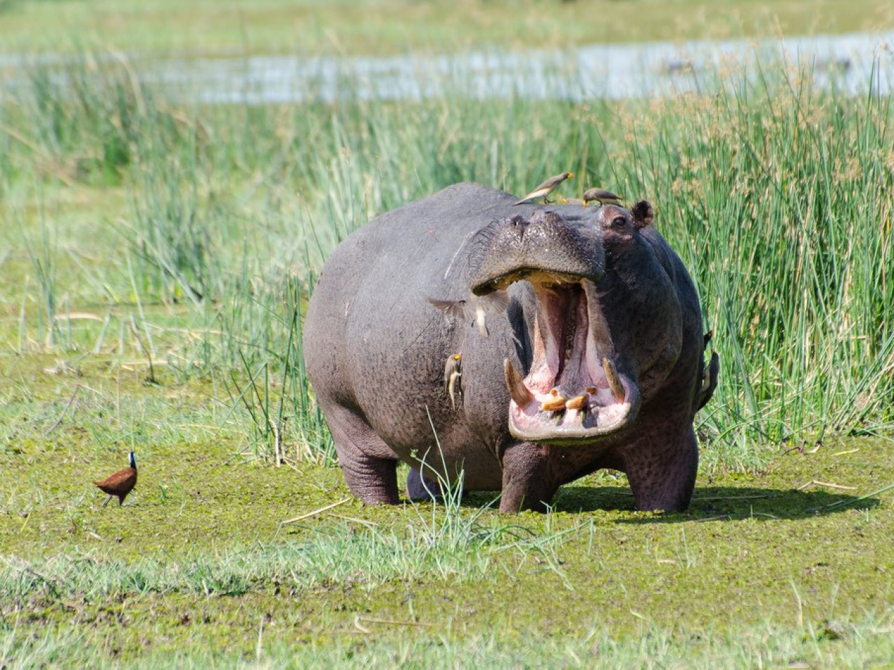 Déjeuner vers 16h00, café / thé, activités du lodge (bateau ou mokoro ou safari pédestre).