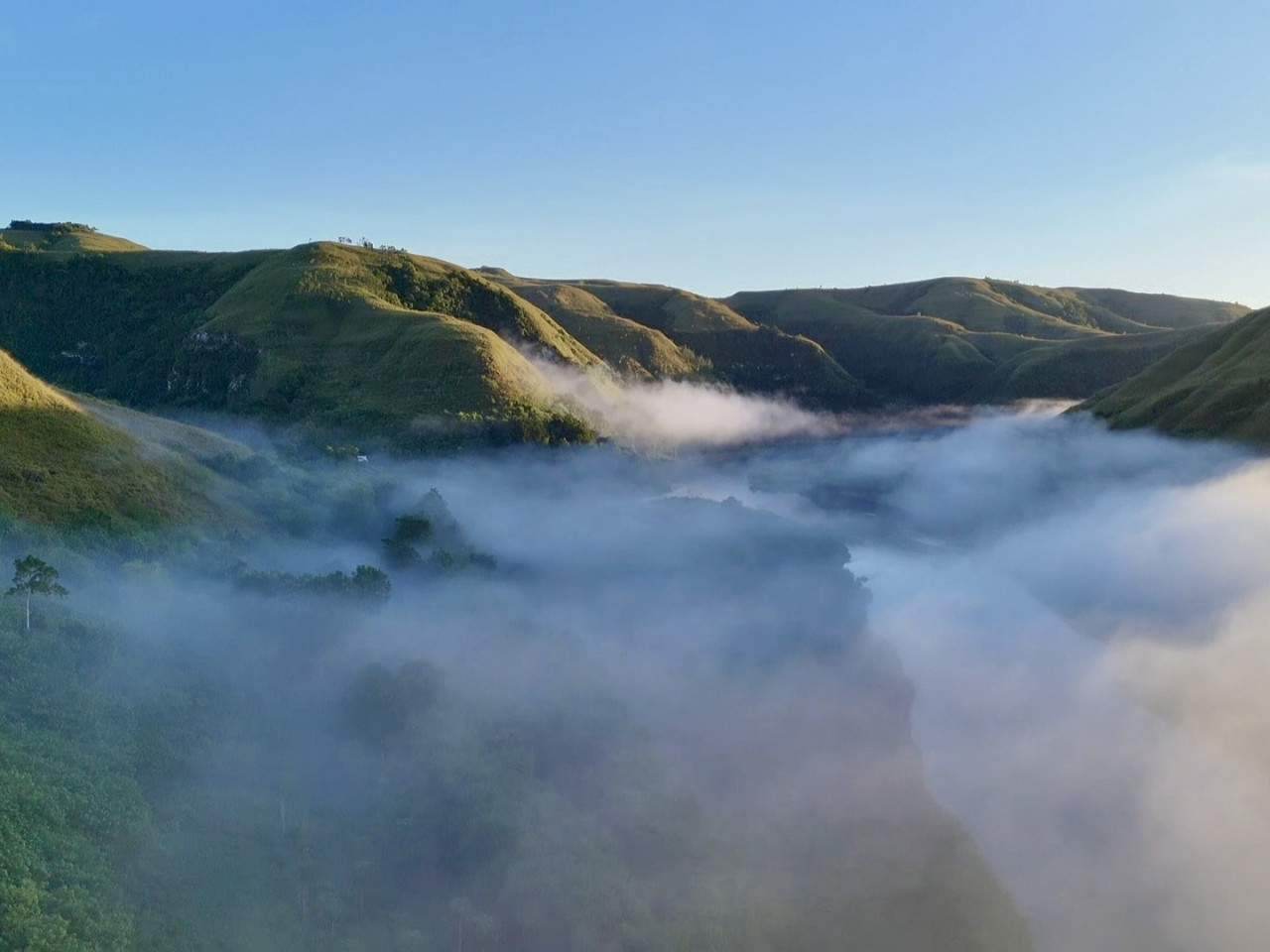 Au cœur de l’Est de Sumba, Piarakuku Hills dévoile un paysage hors du temps : une succession de collines ondulantes, couvertes d’herbes dorées, où le vent semble être le seul voyageur.
