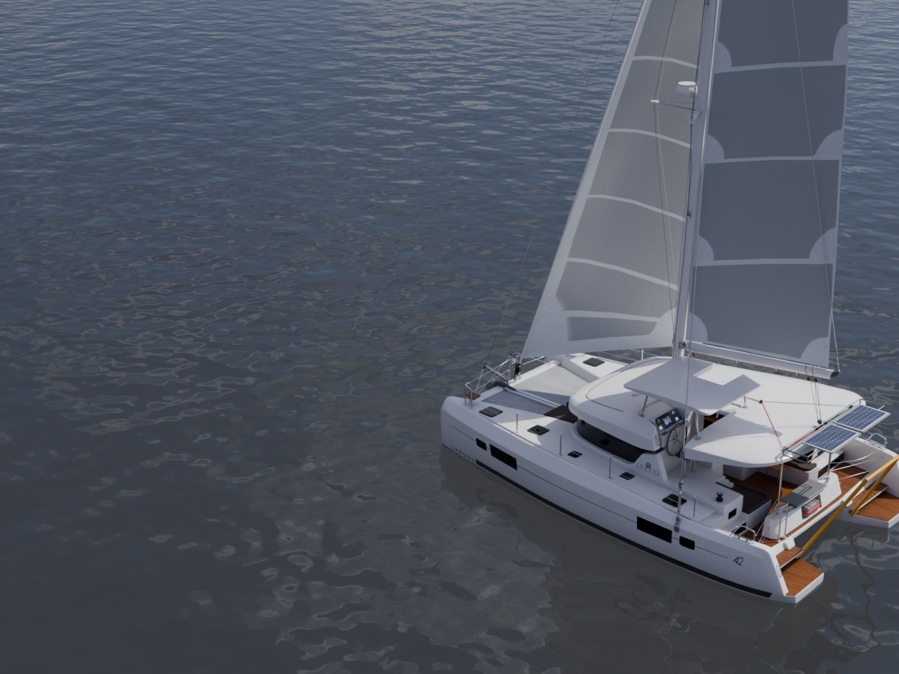 - La pension complète en cabine double sur un catamaran Lagoon 42, du J1 soir au J12 au matin