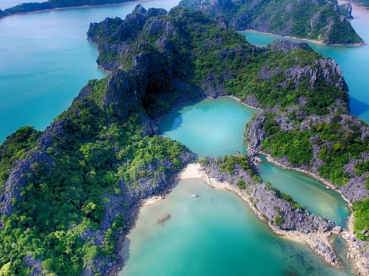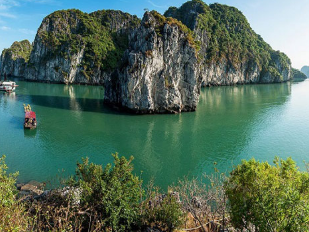 Laissez-vous émerveiller par les formations karstiques spectaculaires et les îlots calcaires aux formes insolites qui se dressent au-dessus des eaux émeraude s’étendant à perte de vue. Le déjeuner est servi à bord, face à ce panorama grandiose.