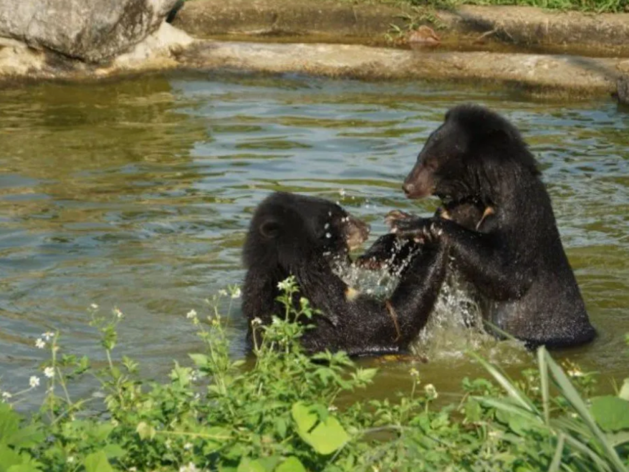 La matinée débute par la découverte d’un sanctuaire entièrement dédié à la protection de l’ours noir d’Asie (Ursus thibetanus). Ce centre accueille aujourd’hui 46 pensionnaires, tous rescapés d’élevages pour la bile ou du commerce illégal. Dans un vaste domaine verdoyant, les ours évoluent dans de grands enclos spécialement aménagés pour répondre à leurs besoins, leur permettant de retrouver un comportement naturel. La visite est particulièrement privilégiée tôt le matin (vers 9h00 – 9h30), au moment du repas, lorsque les animaux sont les plus actifs : un instant unique pour les observer jouer, interagir et exprimer leur personnalité retrouvée.
