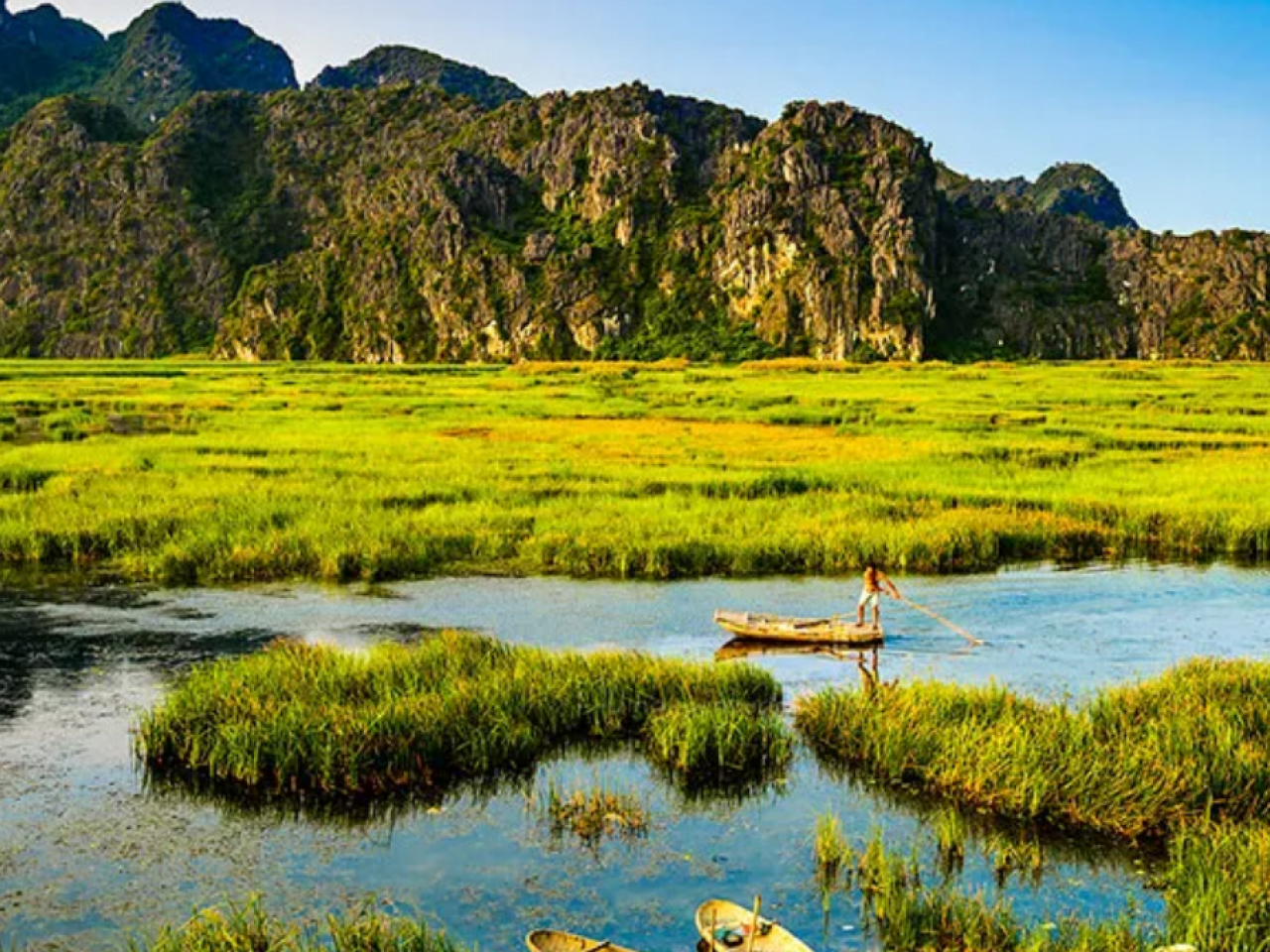 Départ tôt le matin pour une paisible excursion en barque à rames, au cœur des paysages féériques de Vân Long baignés par les premières lueurs du jour. Le lever du soleil illumine les falaises calcaires et fait miroiter les eaux calmes de la réserve, créant une atmosphère magique. C’est le moment privilégié pour observer les colonies d’oiseaux quittant leurs nids à la recherche de nourriture, tandis que les rares langurs à culotte blanche – dont Vân Long abrite la plus grande population au Vietnam – descendent des falaises pour profiter de la chaleur du soleil ou partir en quête de leur repas. Un spectacle naturel d’une beauté exceptionnelle, généralement observable entre 7h et 8h30.