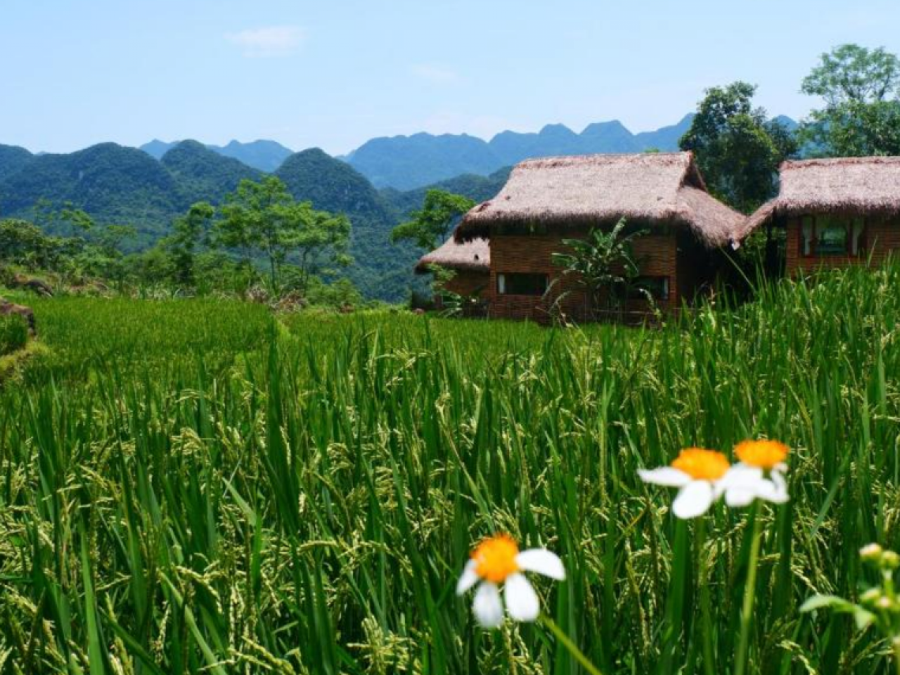 Dans la matinée, découverte de la vallée pittoresque de Mai Chau. Entourée de montagnes verdoyantes et de rizières en terrasses, cette vallée offre un décor d’une beauté saisissante. À vélo ou à pied, immersion dans le quotidien des minorités ethniques thaïes blanches qui y vivent encore de manière traditionnelle. Le parcours traverse des villages sur pilotis, des champs de riz et des sentiers bordés de bambous. Rencontre avec les habitants souriants, curieux de partager leur culture et leur mode de vie ancestral. La matinée se termine par un déjeuner authentique chez l’habitant, préparé à base de produits locaux et de spécialités régionales, une véritable invitation au partage et à la convivialité.