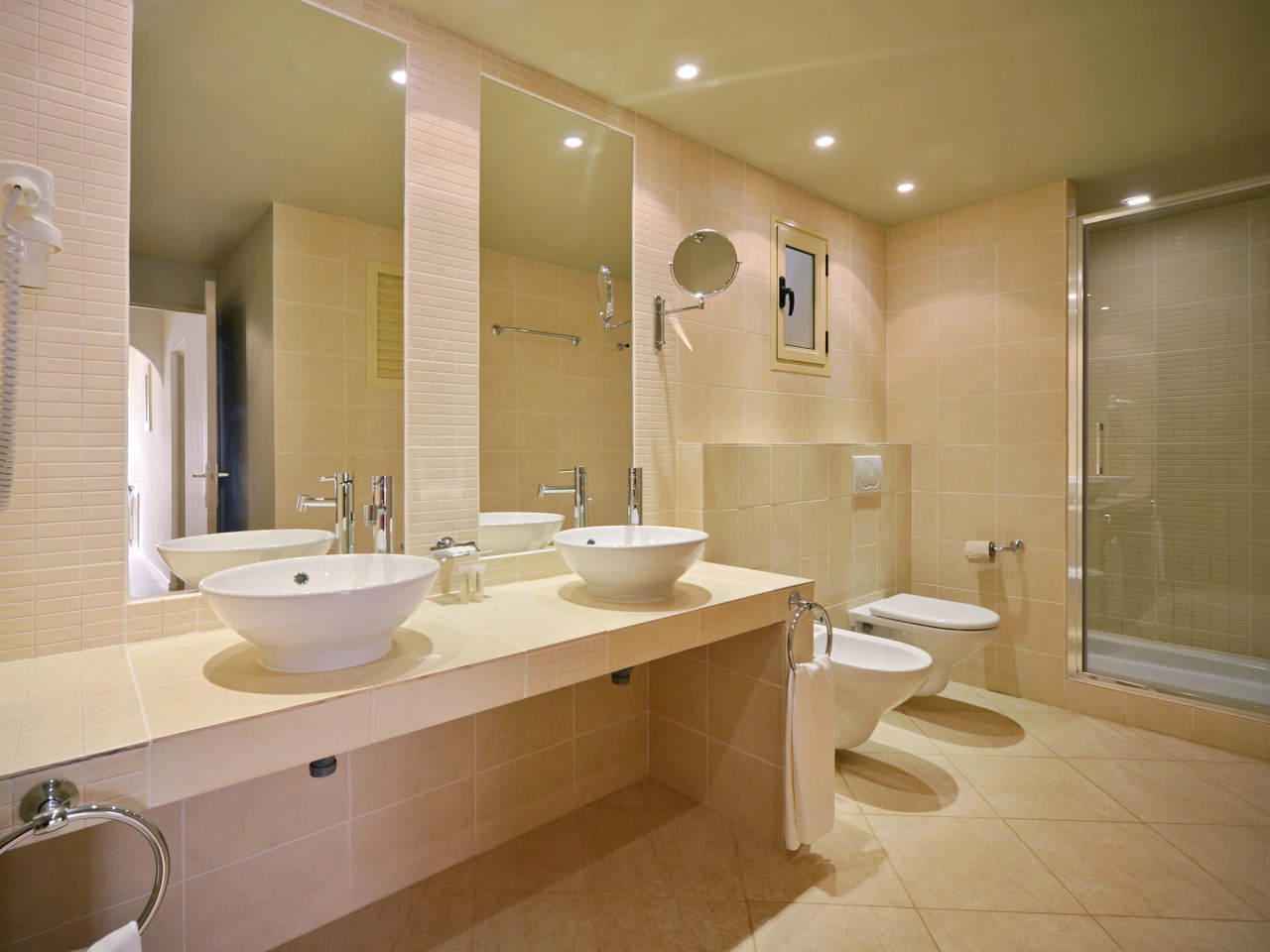 Bathroom (shower or bathtub / WC), hairdryer, A/C, fan, TV/satellite, Wi-Fi (free without download), refrigerator, mini-bar (on request, chargeable), safe, balcony or terrace. Free baby cot.