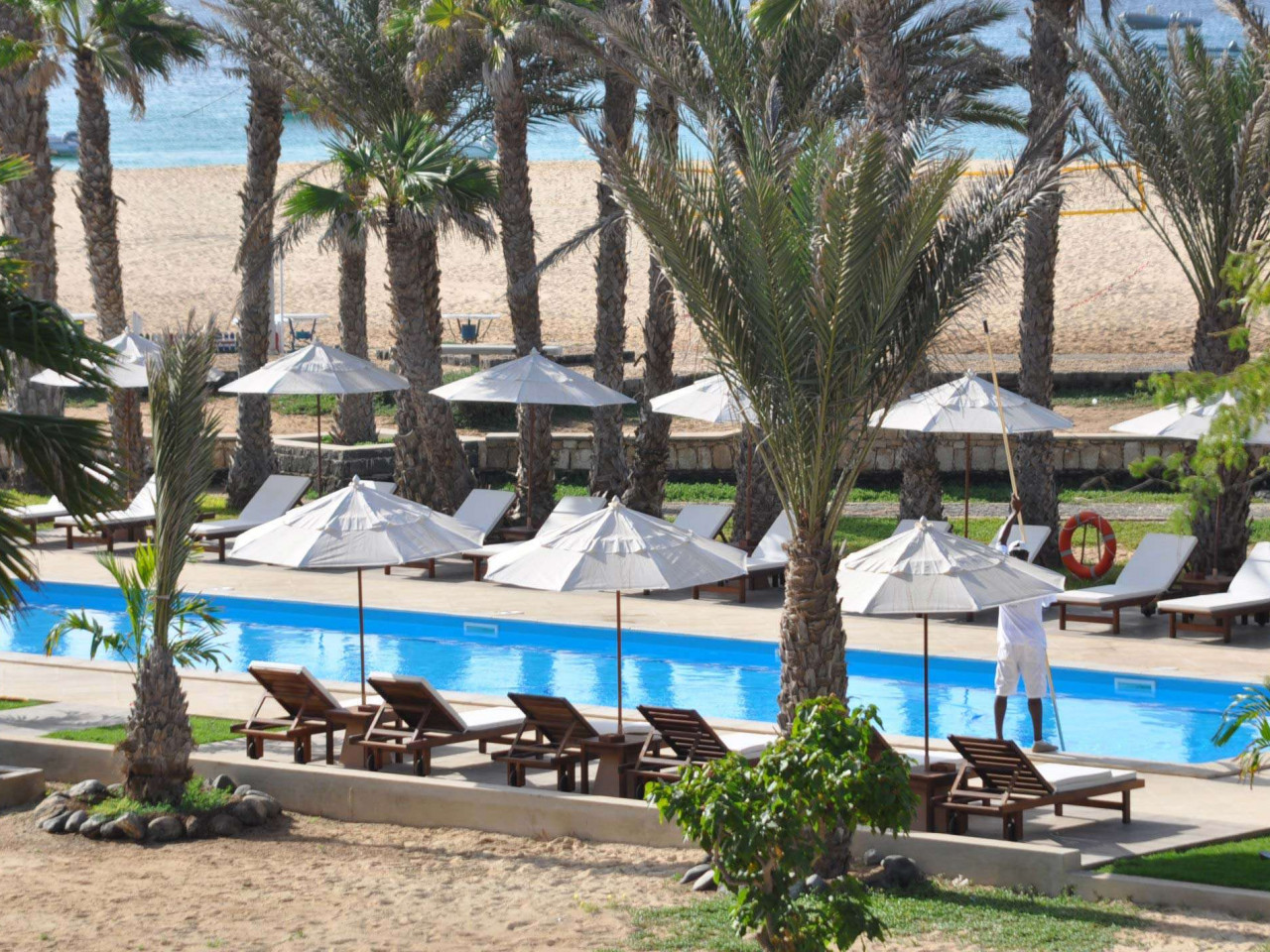 Main restaurant “Les Palmiers” with terrace (à la carte or set menu for dinner with half or full board), Cape Verdean evening on Saturdays. Panoramic restaurant “La Tortue”, restaurant/snack bar “Beach Club”. Restaurant “Le Côté Tapas”. 3 bars.