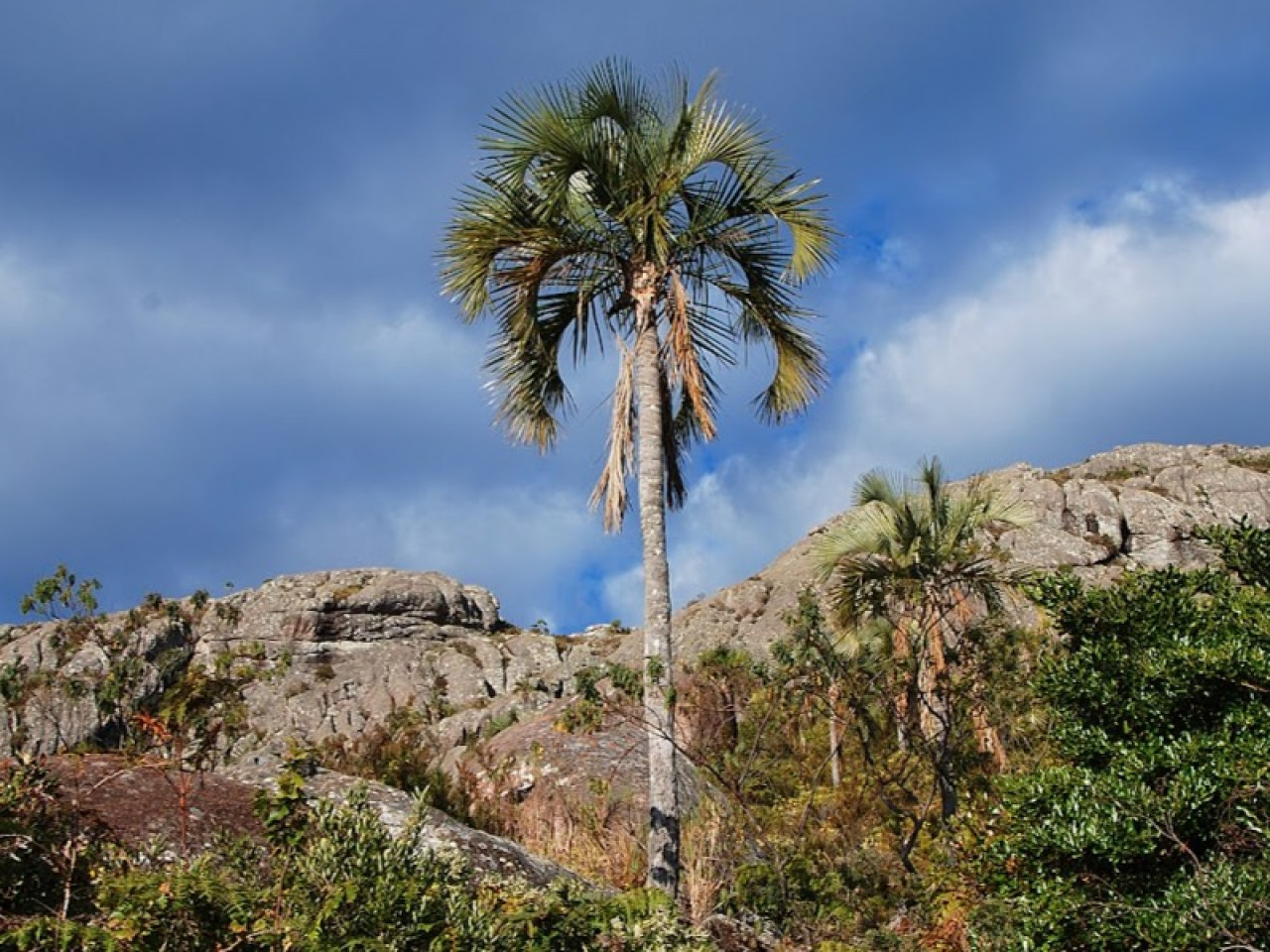 De l’autre côté du massif, le paysage est décoré par les palmiers « ravenea glauca », une espèce rare à Madagascar.