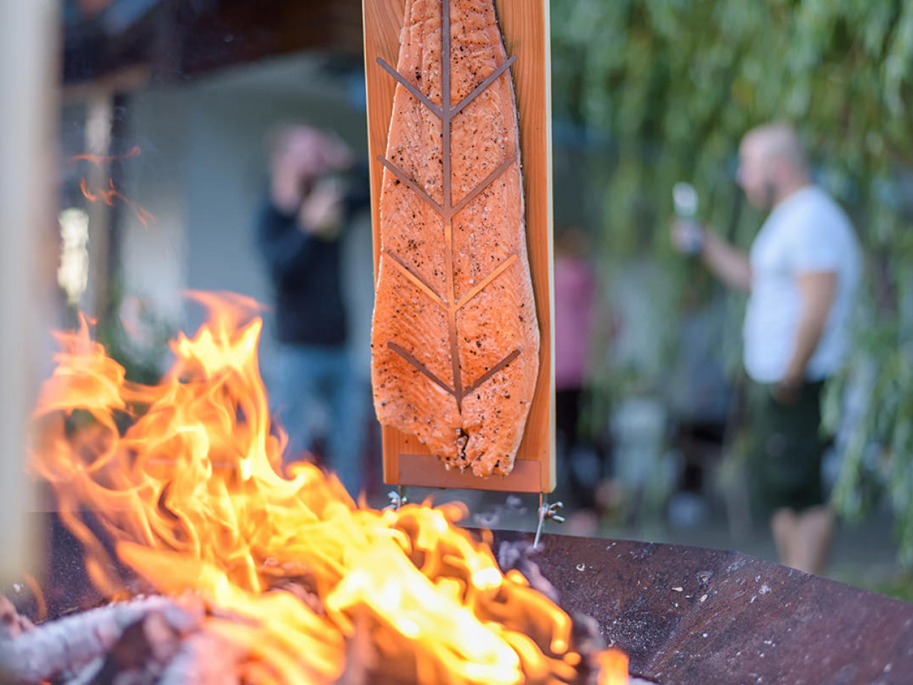 Flamlachs dans le quartier islandais : Dégustez un saumon grillé à la flamme, une spécialité islandaise qui ravira vos papilles avec ses saveurs fumées et délicates.