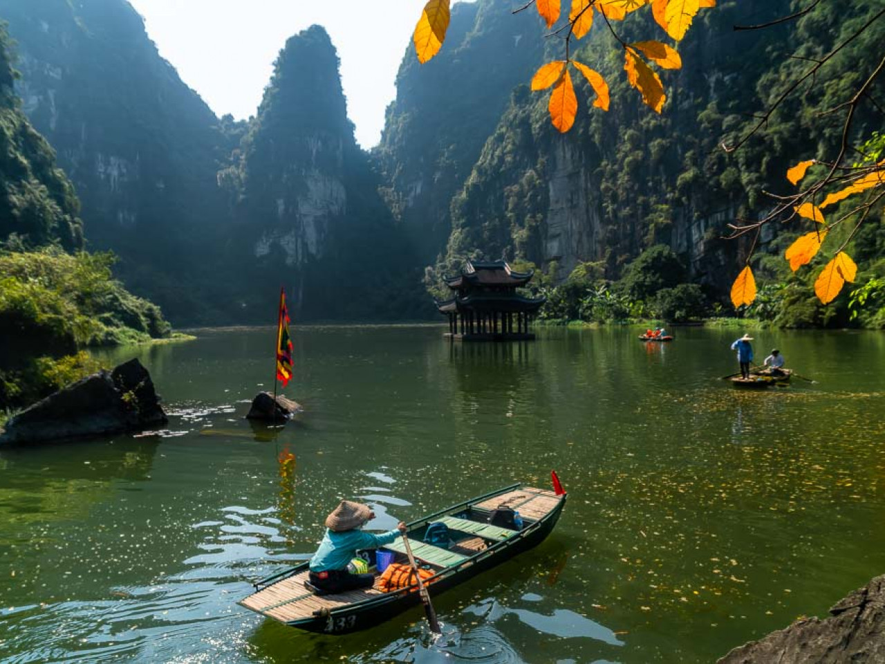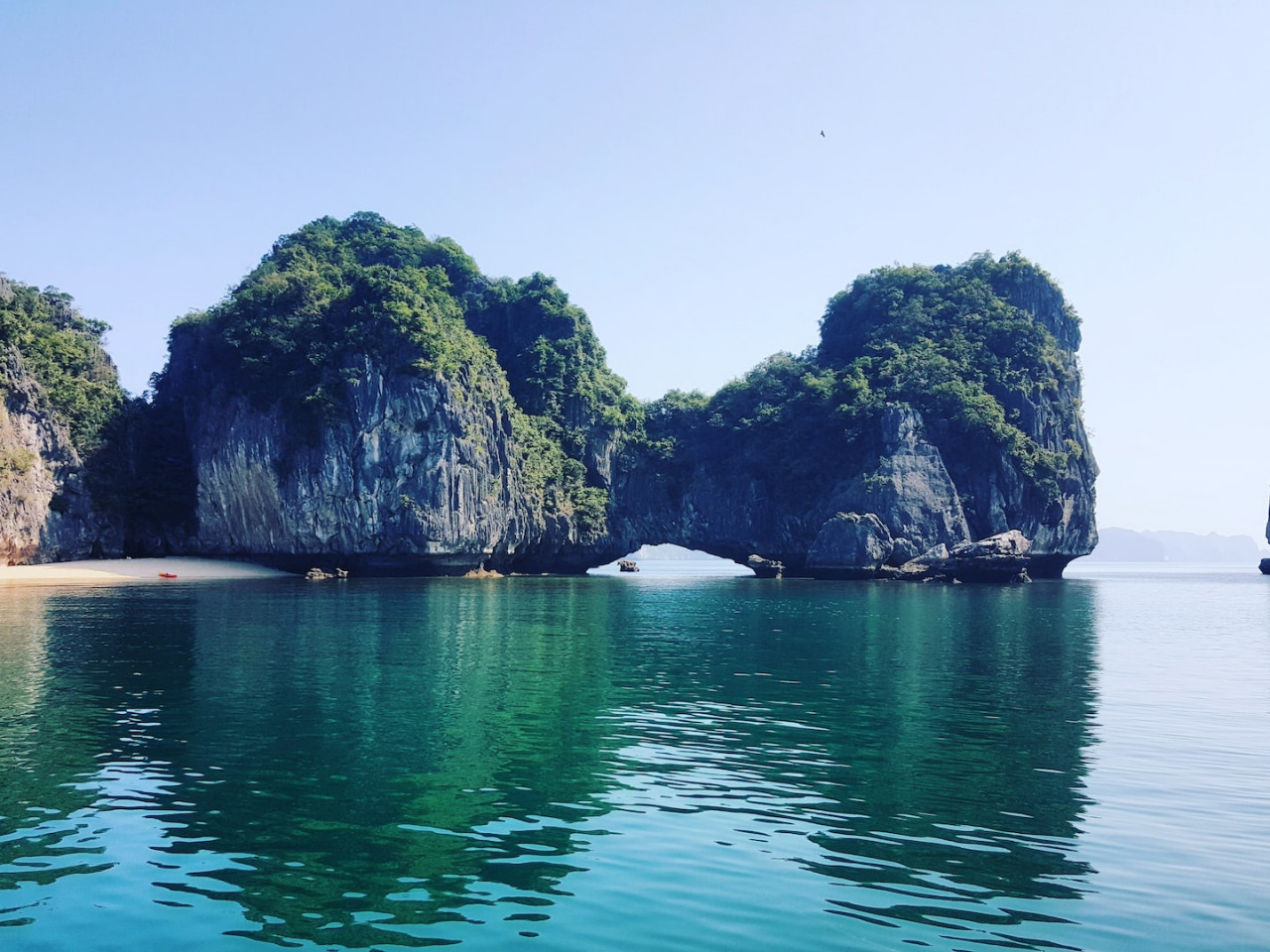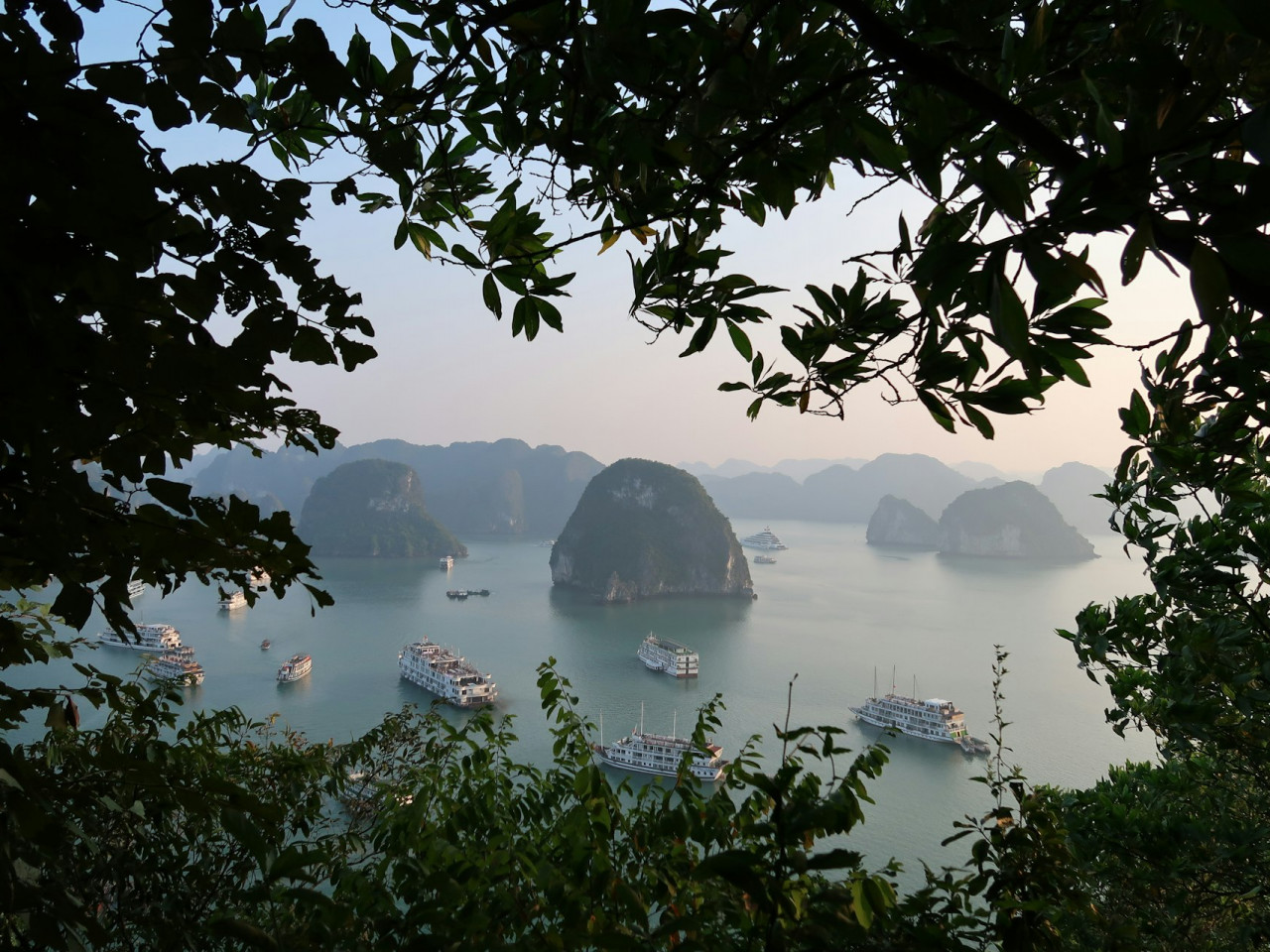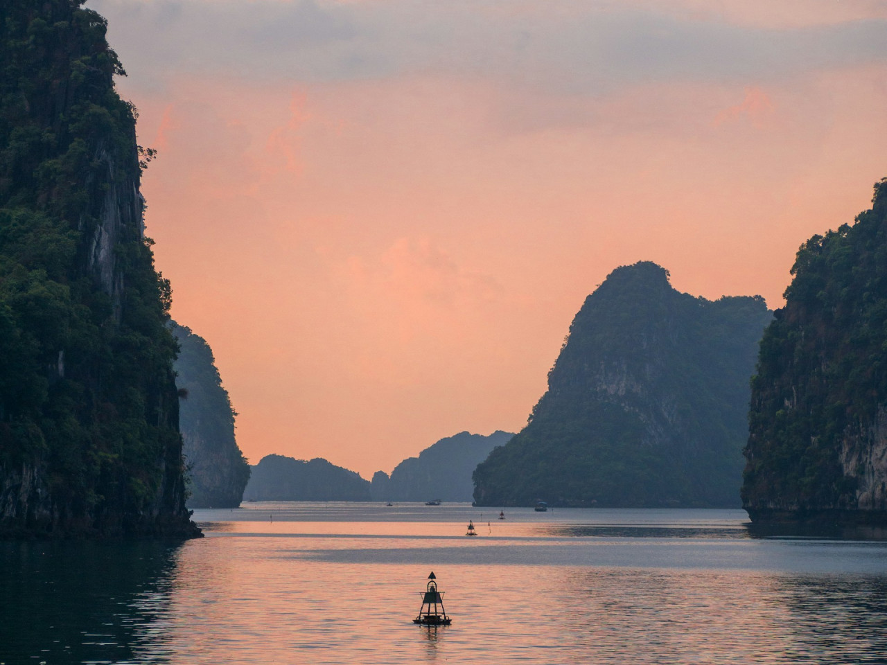 Connue dans le monde entier, la baie d'Halong, constitue l'un des plus beaux paysages du Vietnam, avec ses gigantesques rochers karstiques (rochers-îlots) recouverts de végétation qui semblent surgir de l'eau. on dénombre environ 1 900 îles et îlots karstiques, en général inhabités.