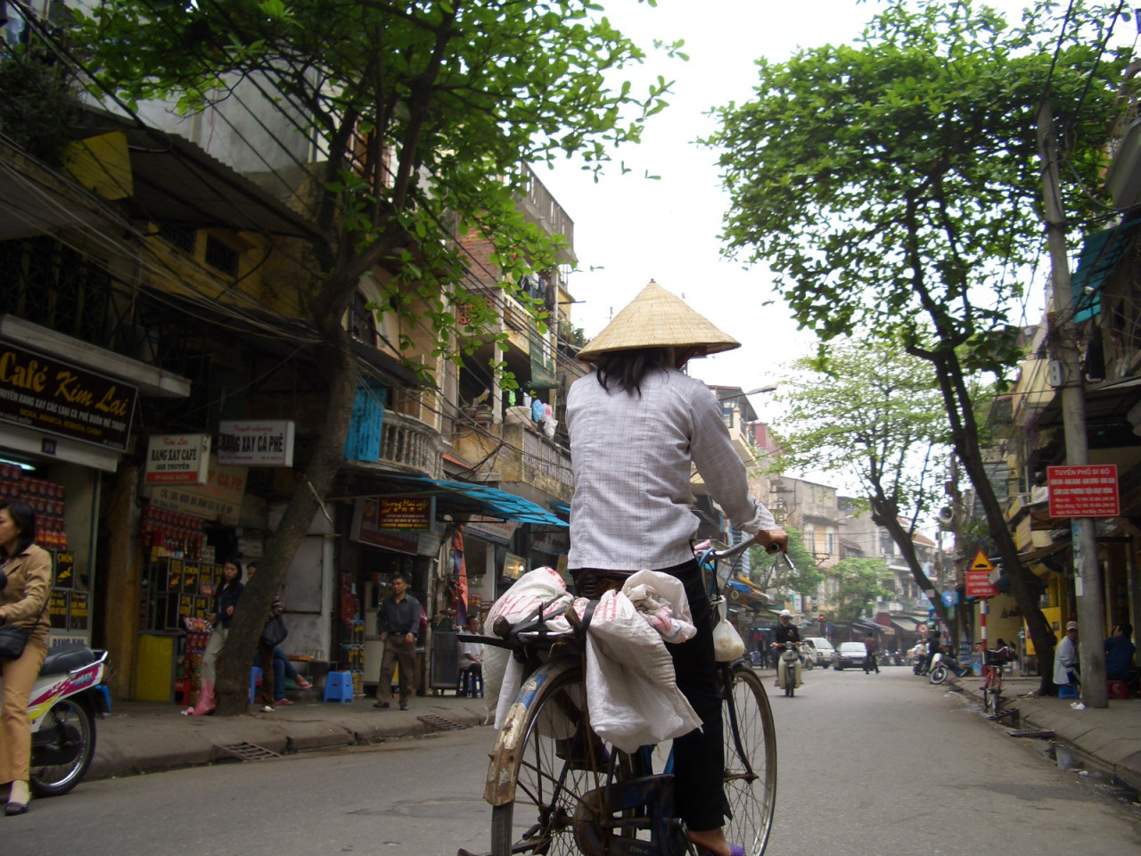 Plongez dans l’atmosphère d’un Hanoï des années 1950 en parcourant le centre-ville en cyclo-pousse. Au rythme du pédalier, vous découvrirez les ruelles animées du vieux quartier et ses 36 métiers, un lieu à l’ambiance unique et à l’activité incessante : ferblantiers, joailliers, cordonniers, confiseurs, tailleurs, forgerons, quincailliers, fabricants d’objets en rotin ou en cuir, sans oublier les marchands d’éventails, d’objets votifs, de laques, de soieries, de nattes, de papier, de bambou, etc. Vous emprunterez des rues bordées de petites échoppes ouvertes sur l’extérieur, où se croisent vélos, cyclomoteurs, cyclo-pousses, piétons et marchandes ambulantes, offrant fruits et légumes frais.